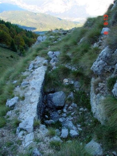 Die letzten Bilder von der Bocca di Vaiona, sie zeigen den unteren Kampfgraben mit den Resten der flankierenden MG-Stellung. Danach geht es weiter zum Dosso della Merdarella, der unterhalb des Cima Cornetto liegt.VJ |