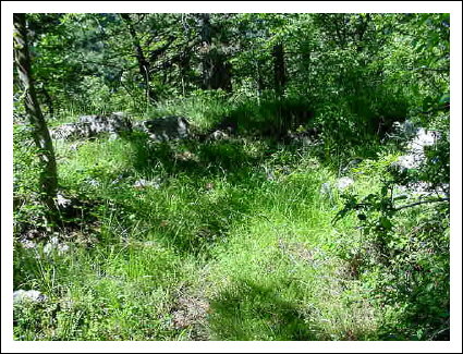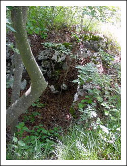 Die Fotos auf der Seite zeigen eingestürzte Kasematte auf dem Gipfel, und nördlich des Gipfels liegende Felsbandstellungen der Infanterie. Der Schützengraben der Hauptverteidigungslinie zog sich hier in Richtung Tal zum Werk Dos di Sponde.