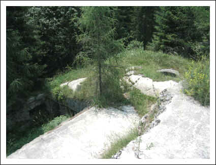 abgesichert und teilweise durch Gras und Büsche fast unsichtbar.