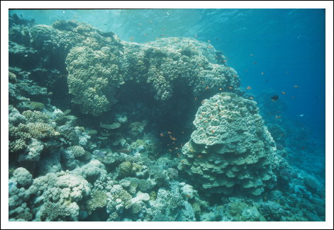 schwimmt Theo zum Riff, das sehr schön bewachsen ist und keine Schäden