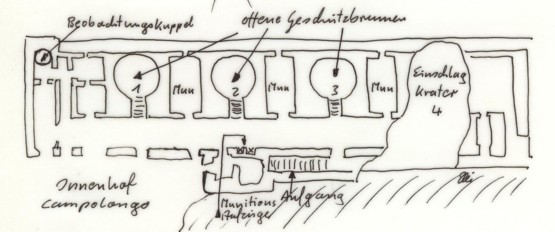 Hier war die Beobachtungskuppel. Sie wurde bei der Beschießung nicht