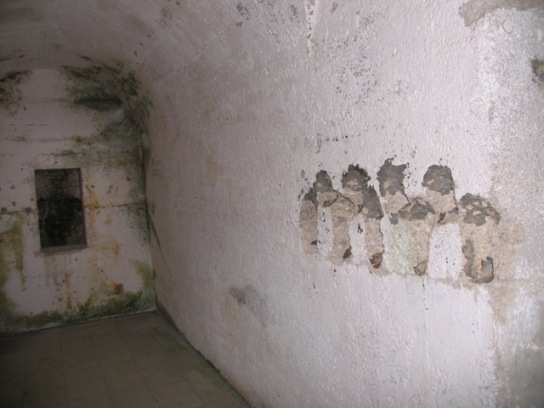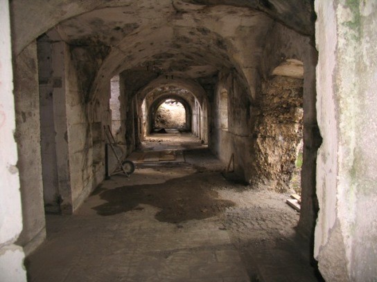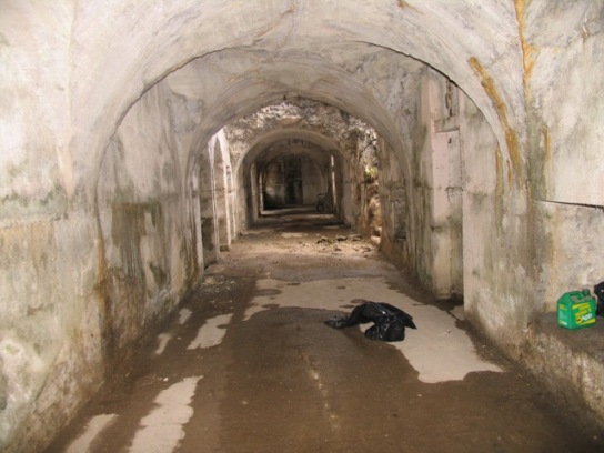 oben im breiten Gang, von dem die Treppen zu den Geschützbrunnen gehen