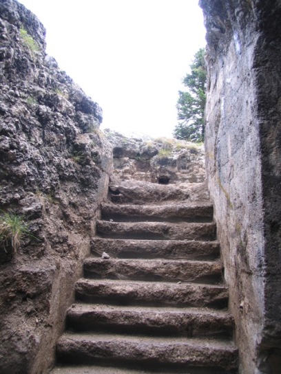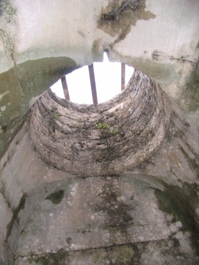 Blick aus dem Geschützbrunnen über die Treppen in den Quergang und den