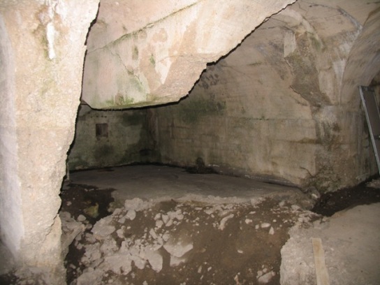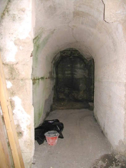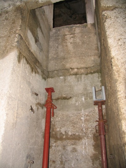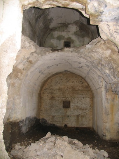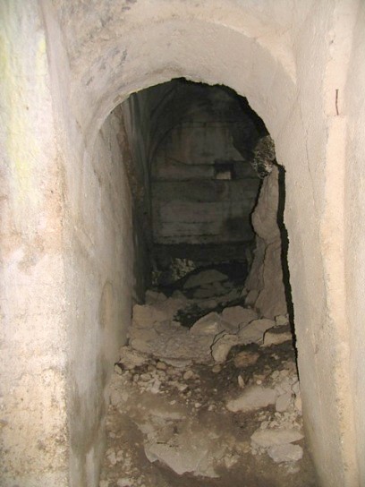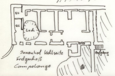Achtung, hier ist der Boden in die Zisterne eingestürzt, leicht zu sehen,