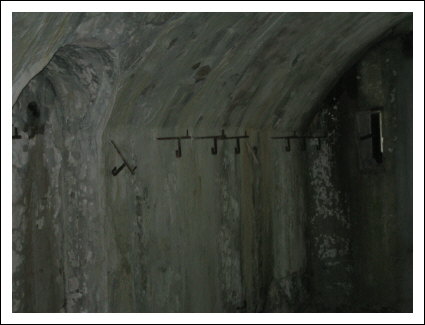 Gegenüber der Geschützkaverne sind im Gang große Eisenringe in die
