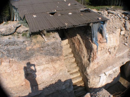 Der Aufgang zu dem inzwischen freigelegtem Geschützbrunnen.