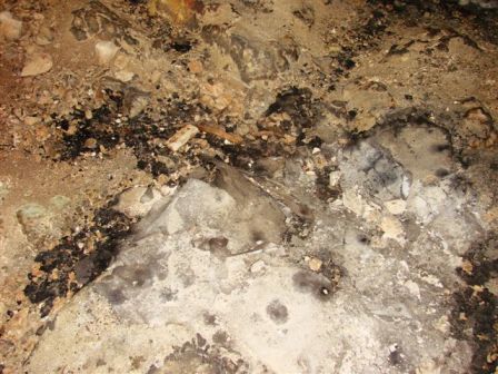 suo pavimento in cemento era coperto con uno strato di carta catramata. Die große Kaverne innerhalb des Stützpunktes. Der Betonfußboden war mit Teerpappe abgeklebt. VJ
