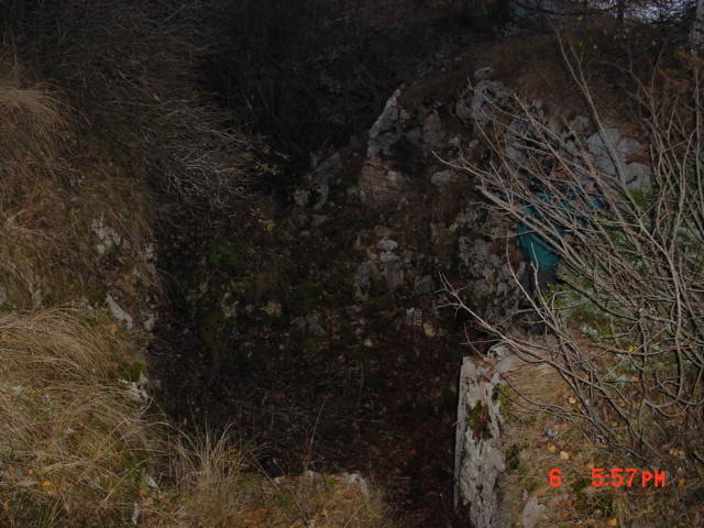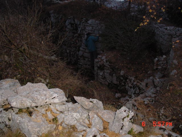Ulrich Mößlang der Tauchbrillenspezialist Uli Mößlang / Volker Jeschkeit Der Stützpunkt: Er besteht aus einem umlaufenden Schützengraben mit vielen kleinen Nischen auf der rückwärtigen Seite. Gebaut wie eine Insel hat er in der Mitte einen tief angelegten Unterstand, der aus 2 Räumen bestand. Von dem Stützpunkt führen Stichgräben in das Vorfeld, die dort in einem weiteren durchgehenden Kampfgraben auf dem Grat des Bondone enden. Arturo untersucht den Unterstand, Franco beobachtet interessiert unser Treiben und lässt sich erklären, was das alles einmal war. Wir müssen jetzt schnell weiter. Es wird dunkel und wir haben diesmal keine Handscheinwerfer mit.