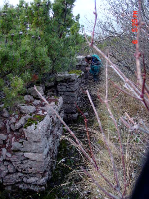 Ulrich Mößlang der Tauchbrillenspezialist Uli Mößlang / Volker Jeschkeit Hinter der Batteriestellung beginnt jetzt der Hauptkampfgraben, der auf dem Grat des absteigenden Palon verläuft. Das Dickicht ist schon zu sehen, nach einigen Metern verschwindet der Graben darin. Mein Freund Arturo betrachtet aufmerksam die sauber geschichteten Natursteinwände des Grabens, Franco ist schon im Dickicht verschwunden. Dabei hat er sich die Daunenjacke zerrissen, wir hören ihn nur rufen und folgen der Spur weißer Daunen im Unterholz.