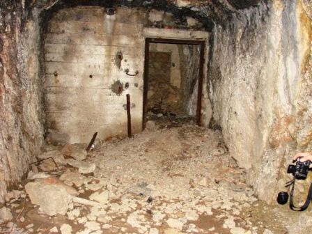 ca. 20 anni fa. Seiteneingang, ex Lüftungskanal des potenten Stromaggregates, der Kanal diente auch als Ausgang der Hochspannungskabel, im Inneren die Befestigungen des Generators, Schalttafelstandort und Originaleingang. Die beiden Eingänge sind heute durch eine Steinlawine verschüttet (ca. 20 Jahre). Der Kavernenkomplex ist enorm groß! Gruss, VJ