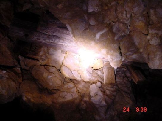 Wir sind auf den Barackenvorplatz zurückgekehrt und haben die unterirdischen Tunnelanlagen betreten. Diese sind sehr groß. Von einer Küchen- oder Abortkaverne führt sogar eine Abwasserleitung ins Freie. Ein Querstollen führt in Richtung Feindseite zu ausbetonierten Teilen der Anlage, die in einem betonierten Schützengraben enden. Hierbei handelt es sich um Schutzkavernen und Munitionslager. Die Felsspalten wurden sorgfältig mit Holzbalken und Brettern ausgestopft, an denen auch Reste von Teerpappe sind. In diesen Tunnelanlagen waren Holzbaracken eingebaut. Die Anlagen selbst waren absolut bombensicher und haben eine Felsüberdeckung von bis zu 20 Metern. Die Zugangstreppe des Eingangsbereiches ist mit betonierten Treppenstufen. Eine Detailaufnahme zeigt noch das äußere Zinkblech über dem Betonhemd einer Kaverne. Damit waren diese wasserdicht. Die Anlagen folgten in der Bauweise dem allgemeinen Befehl des GM Steinhart vom Dezember 1914 und seiner Instruktion zum Kavernenbau vom Oktober 1914. Die feldmäßigen Befestigungen des Cornetto wurden sehr früh gebaut und armiert. Bereits Ende 1914 waren dise einsatzbereit, doch wurde der Cornetto bis Ende 1915 noch weiter ausgebaut. Hinweis dafür ist, das man zuerst Stampfbeton anwendete, danach primitiven mit Runddraht armierten Beton, bevor man in der Endphase massiv armierten Stahlbeton verwendete, der Rundstähle bis 20mm Durchmesser in dichten Stahlmatten enthielt. Auch sind deutlich die unterschiedlichen Betonmischungen der verschiedenen Bauphasen zu sehen.