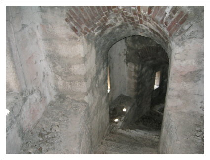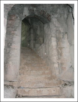 Im ersten Raum geht die Treppe zu den unteren Gebäuden.