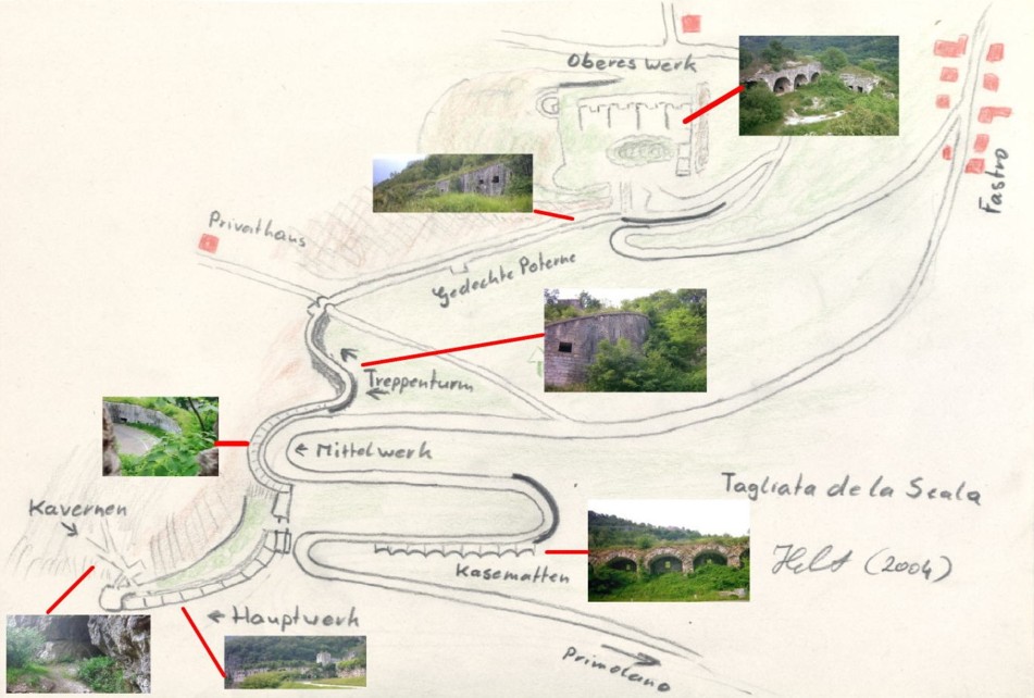 Hier sieht man deutlich wie sich die Poterne den Berg hinauf windet.