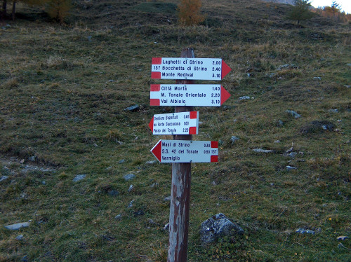 Hinweisschilder bei der Malga Strino, es ist alles sehr gut