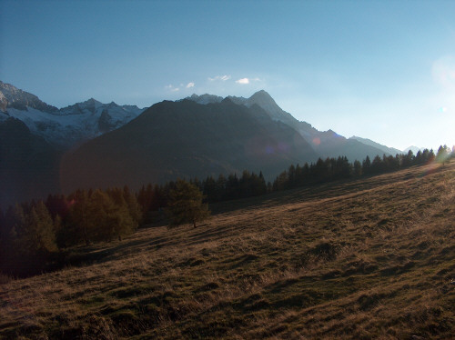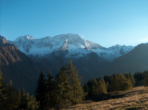 Presanellahauptkamm im Abendlicht, dahinter liegen die riesigen