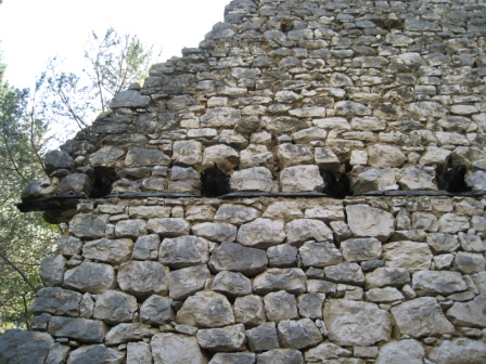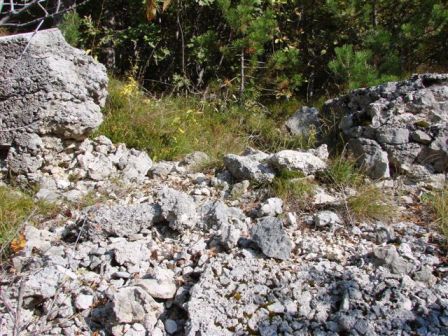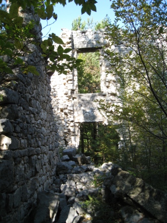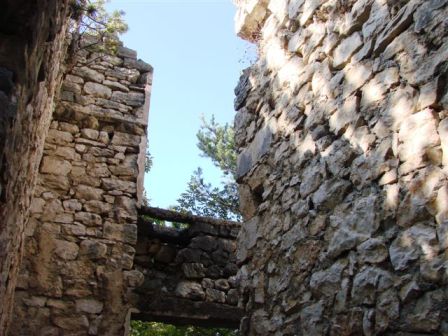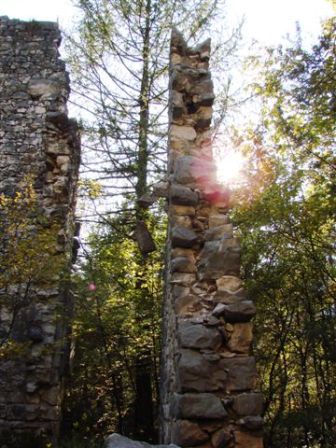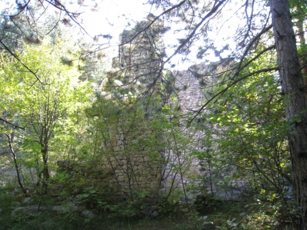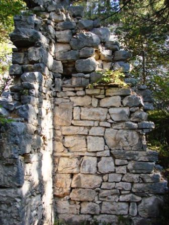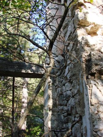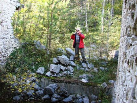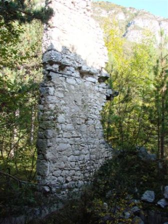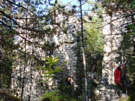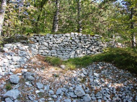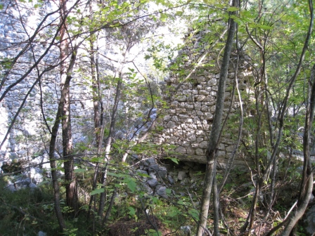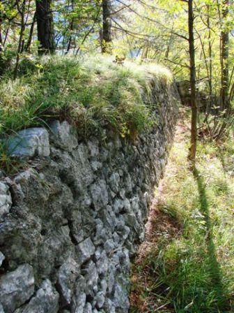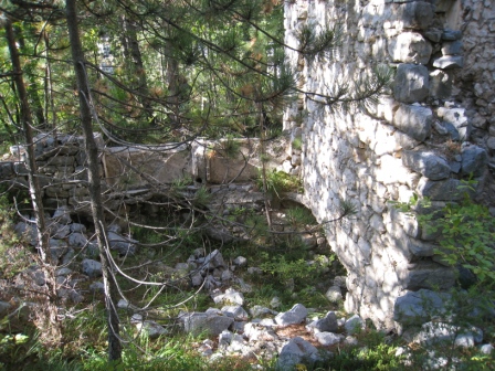 Fast Gleich hinter dem Kehlgraben des Werkes Valmorbia dort wo die drei Fahnenstangen stehen und von dort ca. 50m weiter im Wald befindet sich eine komplette kleine Stadt. Keine Fundamente von Baracken, nein 2-stöckige Mauern, ein Schwimmbecken, Treppenhäuser und gleich darum umfangreiche Verteidigungsanlagen der Infanterie, bis hin zur Betonkasematte mi MG.