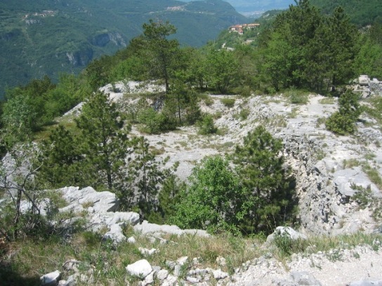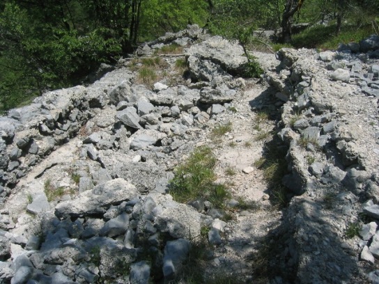 von oben gesehen ist die Stellung mit Geröll aufgefüllt, so dass man die