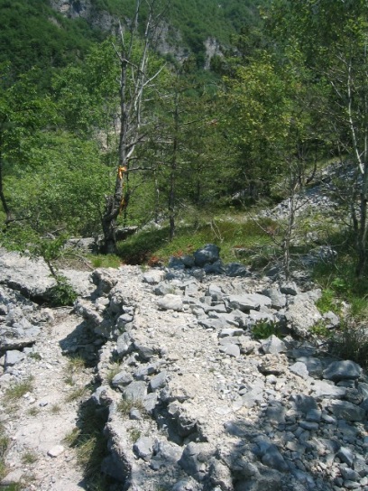 Scharten gesehen haben. Bei dem Baum im Hintergrund ist der Einstieg.