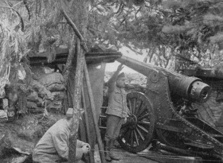 sul affusto campale (come fanno vedere le foto originali). Originalfotos der 12cm/M80. Dieser Typ war in der Weitjoch Batterie. Es ist nicht klar, ob sie noch auf der Festungslafette oder auf der Feldlafette montiert waren.Aber wahrscheinlich wurden sie auf Feldlafette umgebaut. VJ