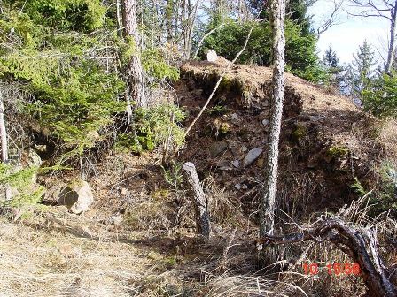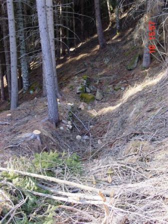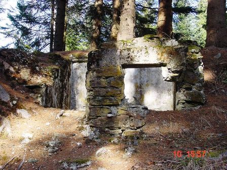 Unterhalb der Pzh.-Batterie und Stützpunkt Busa Grande führt der Abzweig einer Armierungstraße zur 2-geschützigen Batterie auf dem Sattel Busa Grande. Der geparkte "Dienstwagen" läßt die Größe einer Stellung erkennen. Es gibt eine rückwärtige Munitionskasematte und eine kleine Kasematte, vermutlich war dort das Ende der Telefonleitung und die Befehlsstelle des Batteriekommandanten. Die Stellung der Batterie wird im Buch des Festungsartilleriebataillons Nr. 1 Trient beschrieben. Bei der Bauart der Stellung fällt auf, das die Vorderpivotlagerung der Schlittenlafette fehlt. Ich gehe daher davon aus, das die 12cm/M80 auf Feldlafette umgebaut wurde und dort in Stellung gebracht wurde. Aus der Desarmierung der alten Werke Tenna und Colle delle Benne resultieren insgesamt 8+4= 12 Stück 12cm/M80 Geschütze, die in den Stellungen auf dem Panarotta ecc bis zur Sommobatterie eingestellt wurden. Gruss, VJ