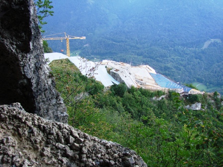 große Kavernenbatterie für 2 Stück 12cm/M80 mit Beobachterkaverne. Die Geschütze stammen aus der Entwaffnung des Werkes Corno und werden in der Armierungsliste "Judicarien, 50.Halbbrigade Oberst Spiegel" vom 25.März 1916 als "Kaverne-Ost" bezeichnet. In der Tat handelt es sich um eine Flankenbatterie mit Schussrichtung Ost bis Südost, um das Tal zu sperren. Ein Verbindungsgang führt dann zu einer optischen Signalstation in Kaverne, von da aus entwickeln sich umfangreiche Stollenanlagen auf mehreren Höhenniveaus zu vielfachen MG-Kavernen und einer Frontalstellung eines kleineren Geschützes in Kaverne. Sehr schön sind die vielen Treppen Auf- und Abgänge, die in die Verbindungsstollen zu den einzelnen Stellungen führen. Während des WKII wurden einige Stellungen von der Organisation Todt geändert (wie auch im Werk Corno), große Teile der unteridischen Anlagen erst nach dem Ende des WKII gesprengt, so dass heute der Zugang sehr schwierig ist. Die gesamten Anlagen sollen dennoch beginnend im Jahre 2008 gesäubert und zugänglich gemacht werden, die dafür benötigten Geldmittel (man spricht von 600000 Euro) sind bereits bewilligt. Verantwortlich für die Arbeiten ist die kleine Gemeinde Praso, die auch das Werk Corno instandsetzt (Bürgermeister Lolli und Kulturassessor Panellati). Die unteridischen Anlagen haben keine Verbindung mit der unteridischen Panzerhaubitzbatterie auf dem Gipfel. Das ist eine eigenständige Anlage, auch ist deren Bauausführung völlig anders, die Ausführung entspricht der Instruktion des GM Steinhart sehr genau. Diese PzH-Batterie wurde meines Erachtens bereits Ende 1914 gebaut, es fliesst noch nicht das Konzept der tiefen Geschützbrunnen ein, sondern noch das Konzept des alten Batterieblockes nach dem Vorbild des Werkes Carriola. In der Tat sind alle 3 Panzerhaubitzen haargenau so gebaut worden, wie im Werk Carriola (ein Zeichnungsvergleich bewies dies). Irrsinnig ist in diesem Zusammenhang, das die Verbindungstunnel alle sehr viel tiefer gebohrt wurden, sie haben mindestens 15m Felsüberdeckung, und das man danach Treppen zu den Panzerhaubitzen anlegte, die lediglich mit 2-3m Felsüberdeckung geschützt waren. Auch alle Munitionskavernen und Unterkünfte in teilweise riesigen Kavernen liegen sehr viel tiefer. Die Stärke der Stampfbetonhemde der Kavernen und Tunnel ist beeindruckend, das isolierende Zinkblech lag aussen (siehe Instruktion Steinhart), die inneren Oberflächen sind sauber und mit weissen Kalk gestrichen. Die einzelnen 3 Panzerhaubitzen 10cm/M05 sind ca. 50 m voneinander vereinzelt und als flaches Dreieck angelegt. Die PzH. -Batterie hat keine Beobachterkuppel, dafür eine Beobachterkaverne, die von der Organisation Todt im WKII umgebaut wurde. Sie hat zwei Eingänge und an einem ihrer Eingänge llegt eine Kaverne als optische Signalstation. Über den Sende-Empfangsrohren sind dort die Namen "Danzolino, Cariola, Croce und Hunyady" eingeschrieben, letzteres Wort ist ungarisch und wohl die alte Schreibweise eines ungarischen Nationalhelden. Anscheinend war der Zielort eine wichtige Stellung der Honved, deren Einheiten in der Sperre von Lardaro von großer Bedeutung waren. Ansonsten kann ich dem Wort "Hunyady" sonst keine genauere Bedeutung beimessen. Im Gegensatz zu der im saubersten Baustile ausgeführten PzH-Batterie, wurde die Kavernenbatterie ziemlich "gräuslich" gebaut. Man kehrte das Bauprinzip um, die Bleche kamen auf die Innenseite und dienten als Betonschalung. Sie wurden durch Biegefalze miteinander verbunden, aber dicht wurde damit die Kaverne nicht zu 100%. Der Stampfbeton der Innenverkleidung ist sehr grob, sehr hart (sehr viel Zement wurde verwendet!), aber man baute wohl in großer Zeitnot. Die Frontalpanzerung ist weder durch Betoneisen noch durch Träger seitlich verankert. Von daher kann man davon ausgehen, das die PzH-Batterie wohl eine der frühesten Prototypen dieser Art darstellt. Gruss, VJ