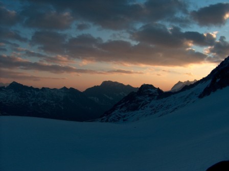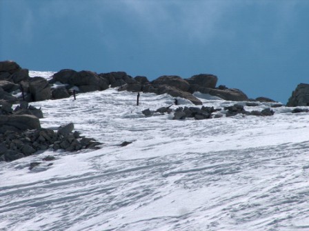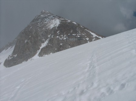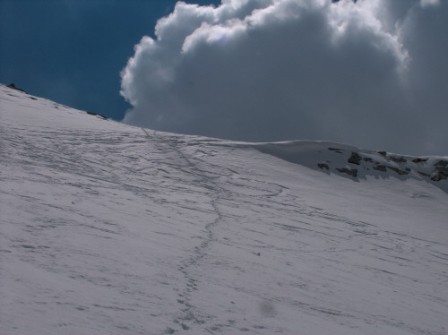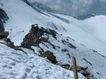 Unser Abstieg direkt zum Madron runter, im Sommer ist dieser Hang voller Spalten.