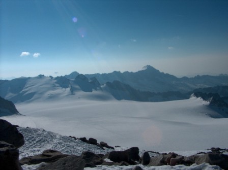 der guten Firnlage sind wir gut am Adamellogipfel angekommen, die