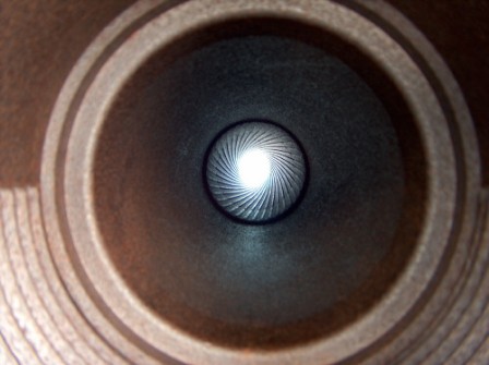 Blick ins Rohr (durch die Ladeöffnung) Reste des Stacheldrahtverhau hängen über den Grat hinab.