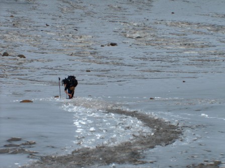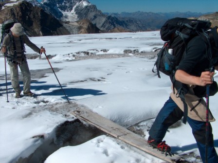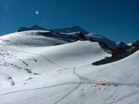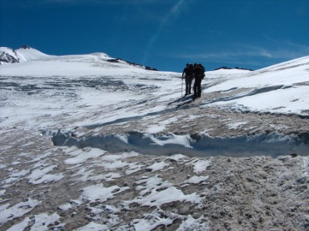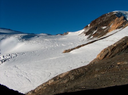 Berges, die Route führt über das sichtbare Eisfeld hoch und über den