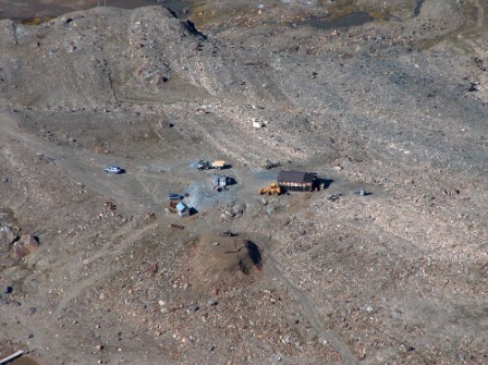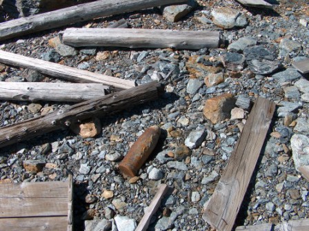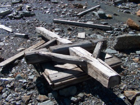 Reste der Hütte, die Teile sind noch gut erhalten, da sie die meiste Zeit tiefgefrohren sind
