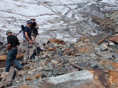 Die Dreharbeiten beginnen, Ernst und Richi, ganz rechts unser Tonmann Norbert mit der "Bisonratte"