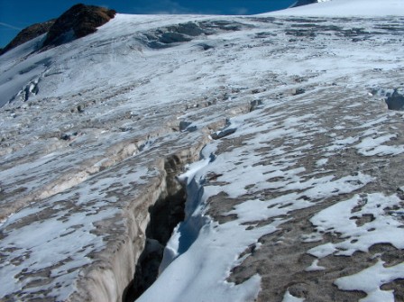 der Gletscher ist "ehrlich" und die Spalten zeigen sich ganz Unverholen.