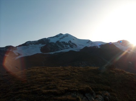 suchen, aber jetzt wird´s hell, der Langferner noch im Schatten, aber das