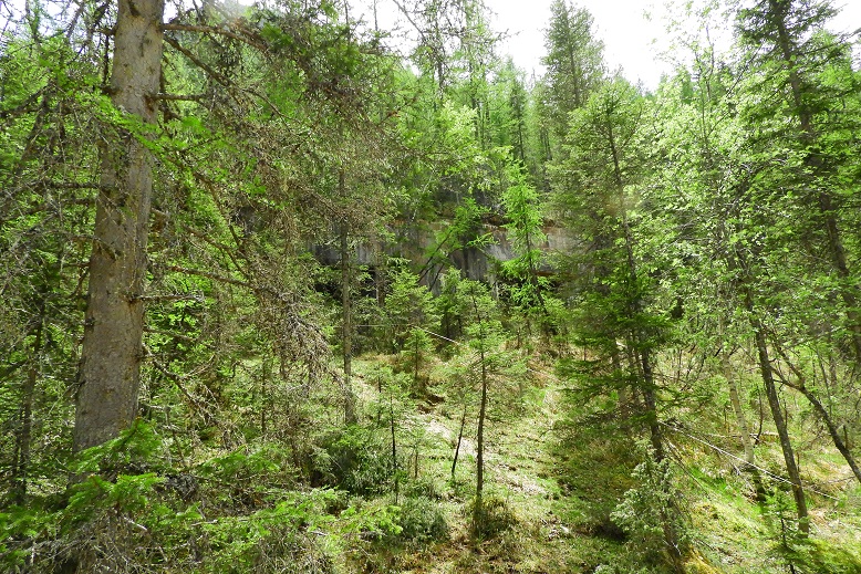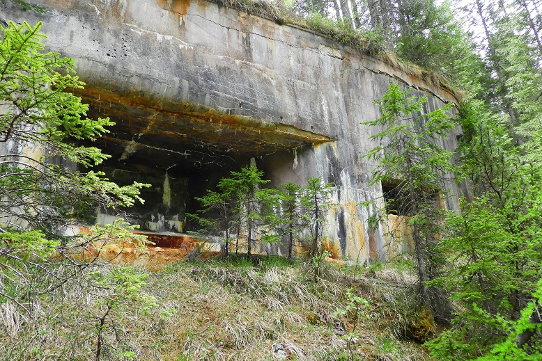 weg in den Wald (Fahrrichtung Cortina). Das ist der zugeschüttete Panzergraben. Am Ende befindet sich das