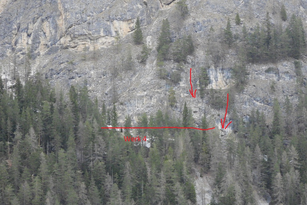 Das 4. Werk liegt südlich von Werk 1 hoch oben in den Felsen nahe dem Munitionslager.