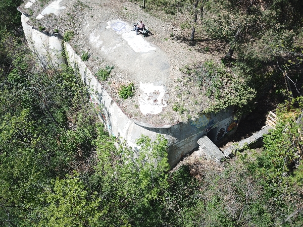 Deck, jedoch ist das Werk im dichten Wald- und Buschwerk kaum zu sehen