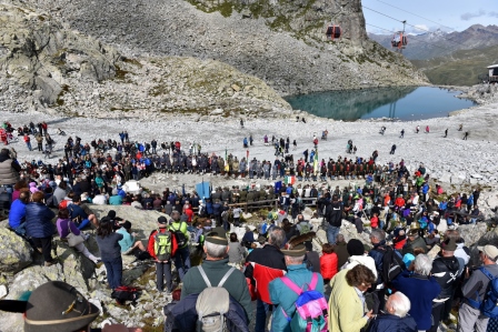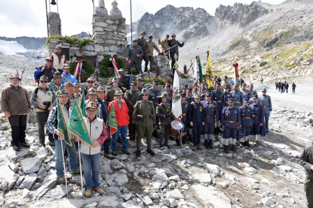 Seit 1967 nimmt der Kaiserschützenbund Tirol 1921 welcher seit 96 Jahren die Traditionspflege der 3 Kaiserschützenregimenter und der Berittenen Tiroler Kaiserschützen pflegt an dieser Int. Gedenkfeier teil. Diese Feier geht auf den 09 Juni 1915 zurück damals griff das Alpinibataillon Morbegno mit 1.000 Mann, die 100 Mann starken Landesschützen am Passo Paradiso in den Gletschern des Adomello an. Den Landesschützen gelang es diesen Angriff in schweren Kämpfen erfolgreich abzuwehren. Beim Rückzug ließen die Alpini zahlreiche verwundete Kameraden am Gletscher zurück, welche von den Landesschützen geborgen wurden, und so vor dem sicheren Tod bewahrt wurden. Auch in diesem Jahr nahm unser Bund mit einer großen Abordnung aus Nord und Welschtirol an der Gedenkmesse welche von Kardinal Giovanni Battista Re zelebriert wurde, mit Vertretern aus der Politik und zahlreichen Abordungen teil. Der Bundesobmann Hans-Peter Gärtner Vzlt i. R. Bundes - Major