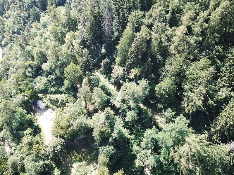 Luftaufnahme des Bunkers 9, von oben kaum sichtbar.