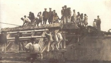 Eisenbahnbataillon München Kriegsbrücke im Bau
