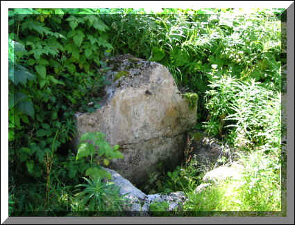 Am westlichen Ende ragt ein steinerner Torbogen aus dem Hang.