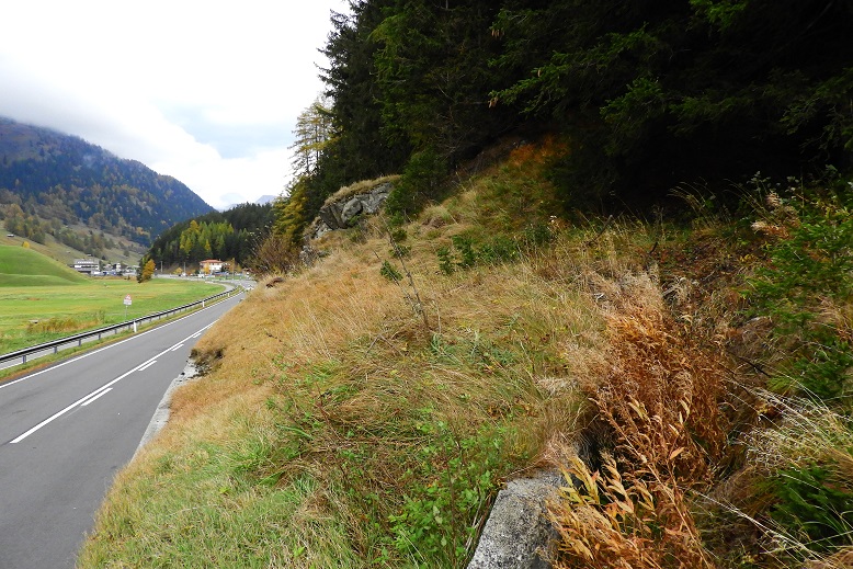 Die Mauer an der Strasse stützt hier nicht den Hang an der