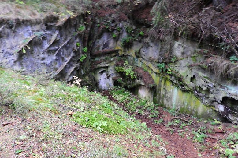 liegt direkt neben der Strasse und am rechten Ende des Panzergrabens.