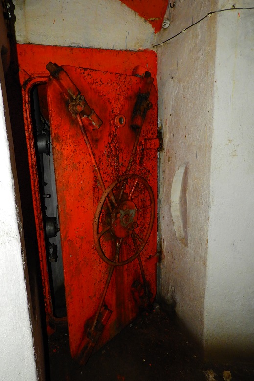 Die Panzertüren zu den Geschützständen. Diese Gasdichten Türen wurden erst nach den Krieg statt der originalen Eingabaut.
