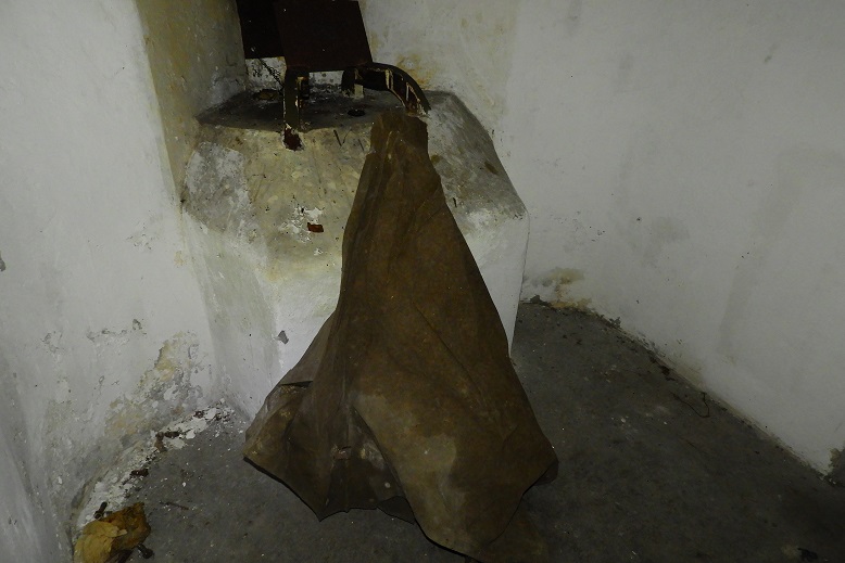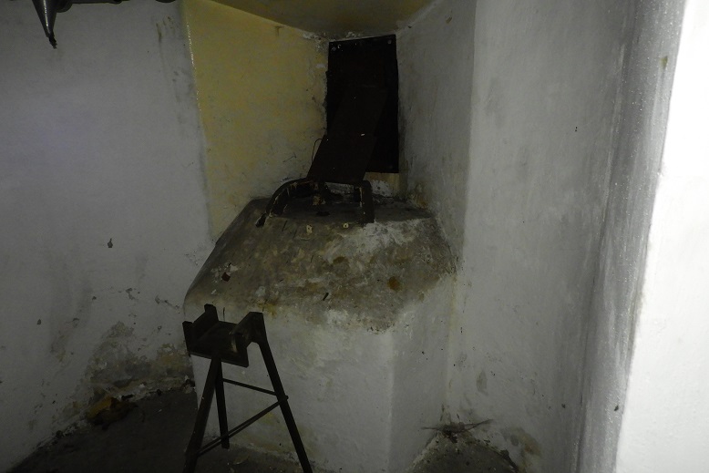 Die Geschützscharte (heute zugemauert) war durch eine Klappe mit Mauertarnung verschlossen. Auch diese Anlager gehört zur