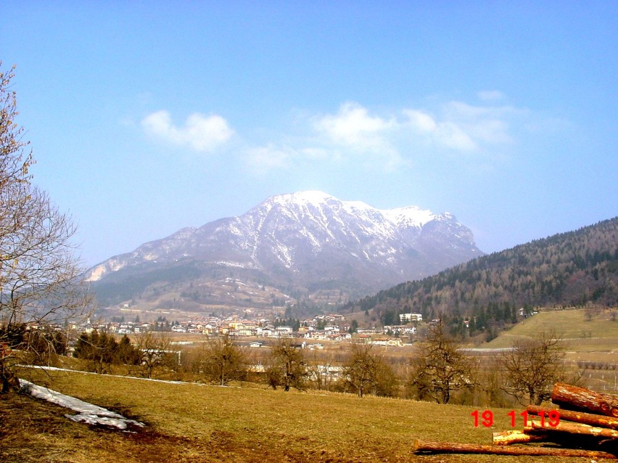 Das Marzola Massiv von Vigola Vattaro aus fotografiert während der Rückfahrt zur Festung Trient. Beeindruckend die Steilhänge, die sturmfrei waren. Hinter dem Marzola Massiv liegt die Stadt Trient