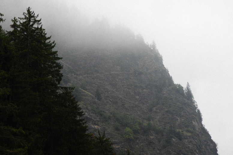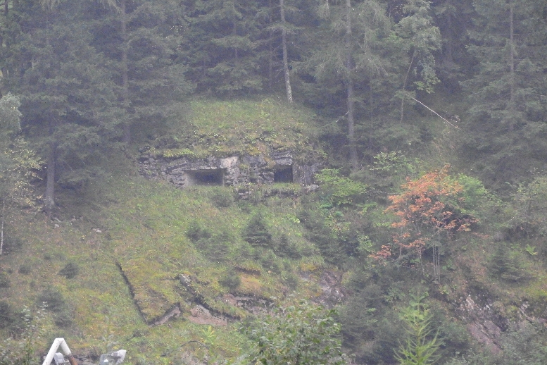 Das Werk 4 liegt hoch oben in dieser Felswand. Die Geschützscharten liegen auf der anderen Seite des Felsriff.