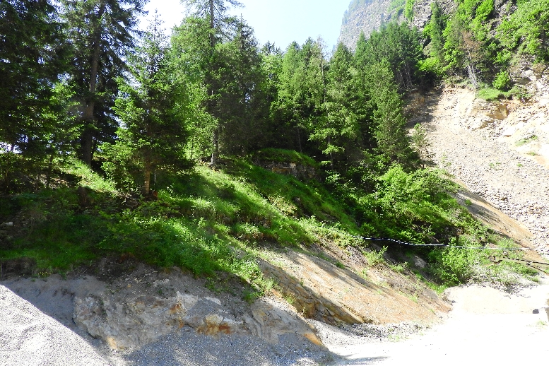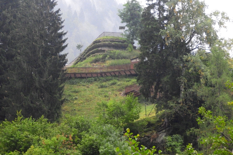 Zum Werk hoch führt ein Weg durch den Wald und dann durch die Felswand, nur leider ist der Weg nicht mehr vollständig erhalten