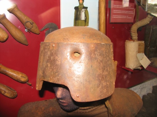 Der italienische Helm weist einige quadratische Löcher auf, wie von einem