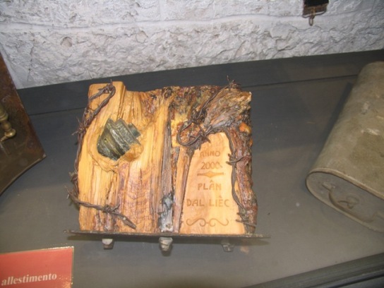 Durch das weiche Holz ist der Zünder der Granate nicht explodiert.