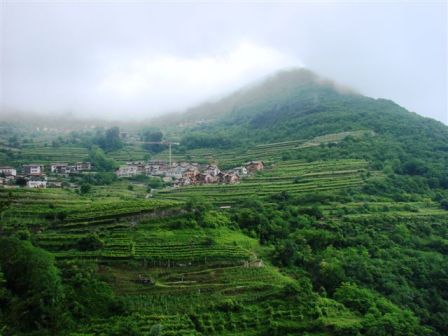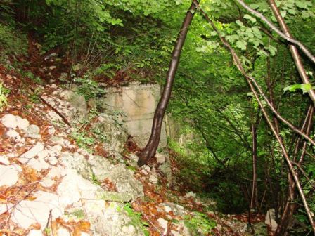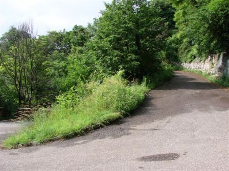 Vorher zweigte von der alten Straße die Straße nach Cimone ab. Im Tal liegt noch die alte Mühle. Die Straßen waren gegen Feindeinsicht gut geschützt. Man baute sie am Nordhang.Der Nachteil: Sie lagen im Winter immer im Schatten. Auf dem letzten Bild verläuft ein Teil EINER Verteidigungslinie in Richtung Garniga. Primo era il bivio per la vecchia strada verso Cimone. Nella valle esiste ancora il vecchio mulino. Le strade erano ben coperte contro la vista nemica. Il svantaggio era l ombra nel inverno.Sul ultimo foto: Sulla cima esiste ancora una parte di una linea di difesa verso Garniga. VJ